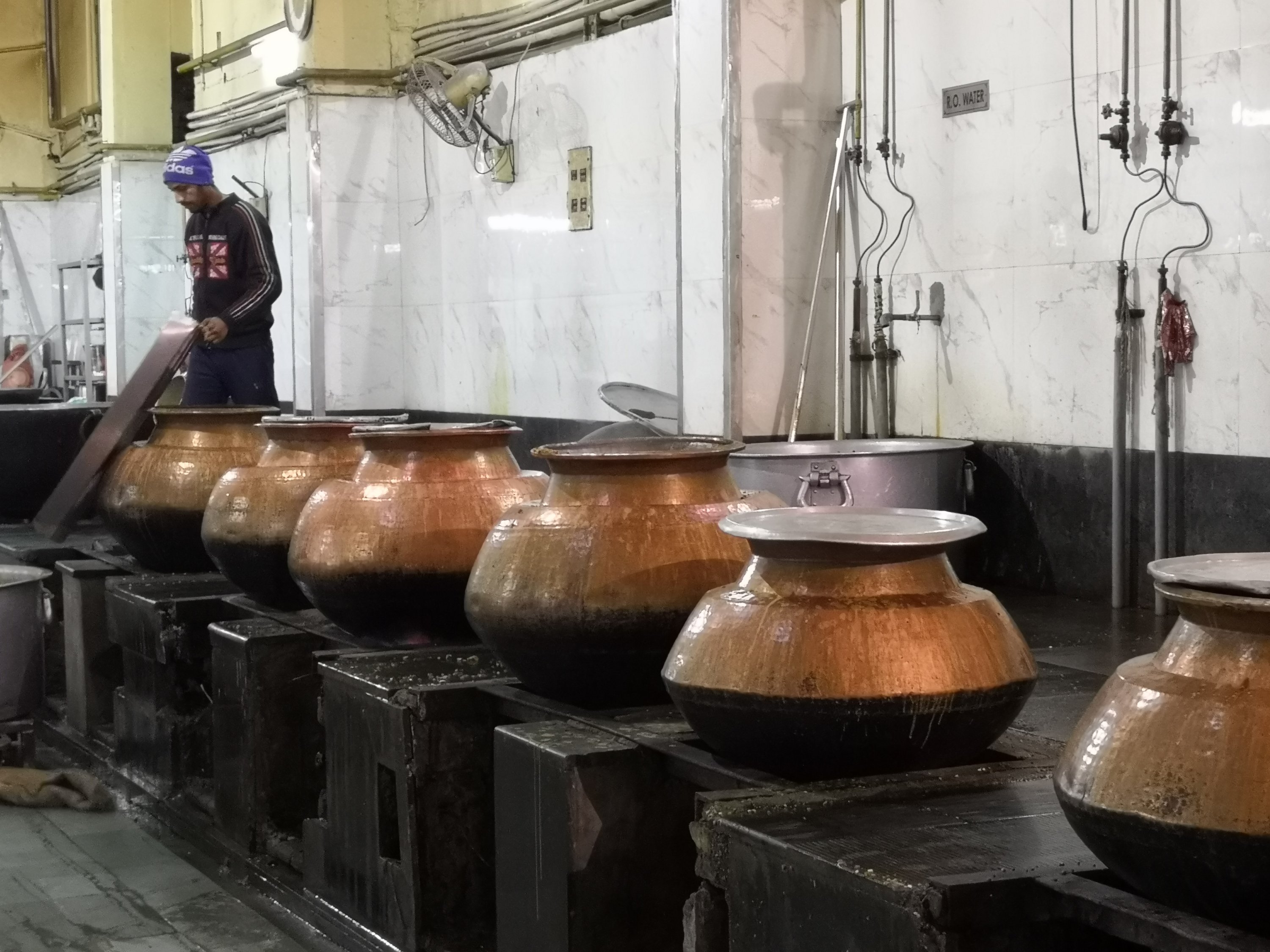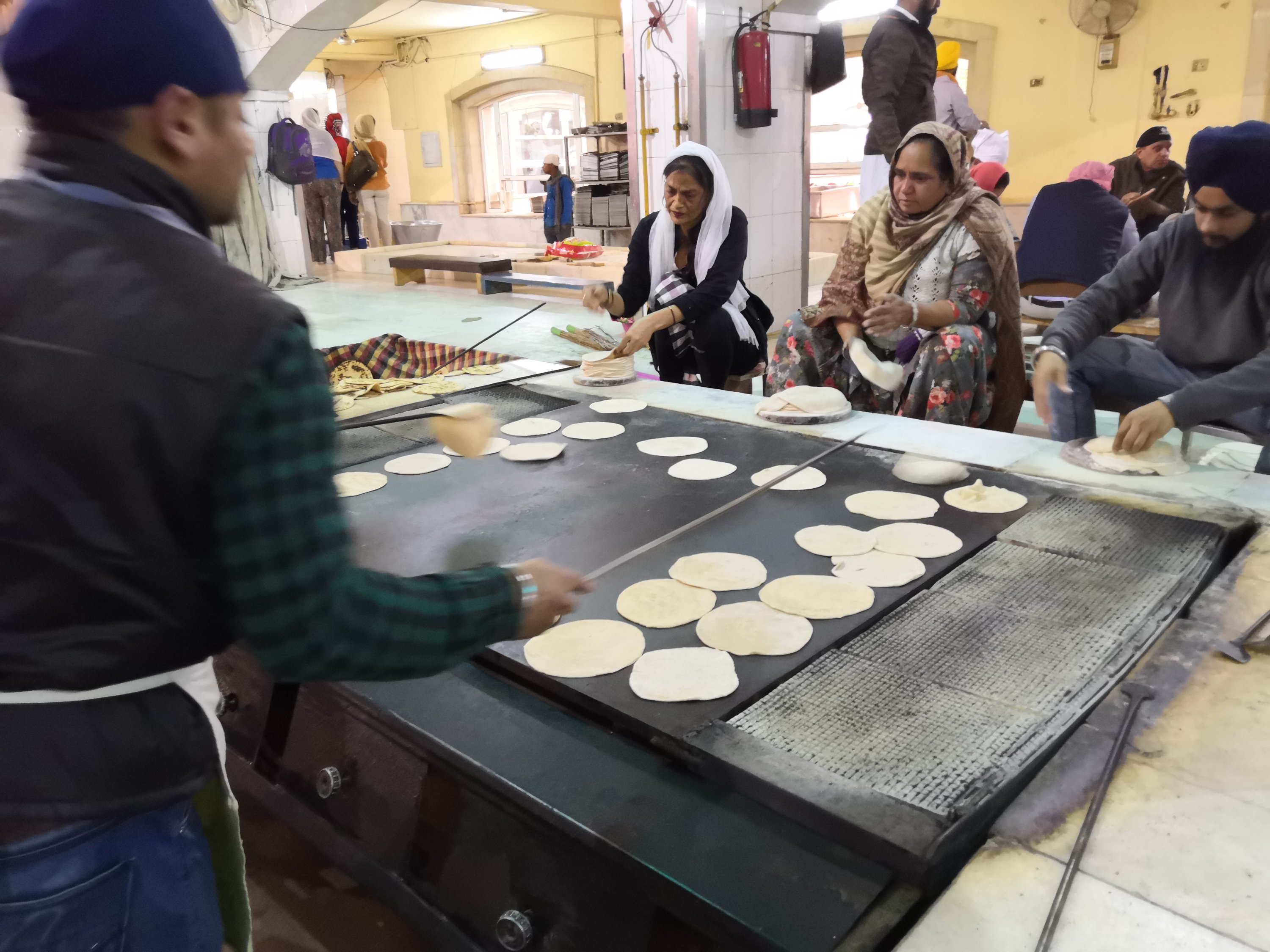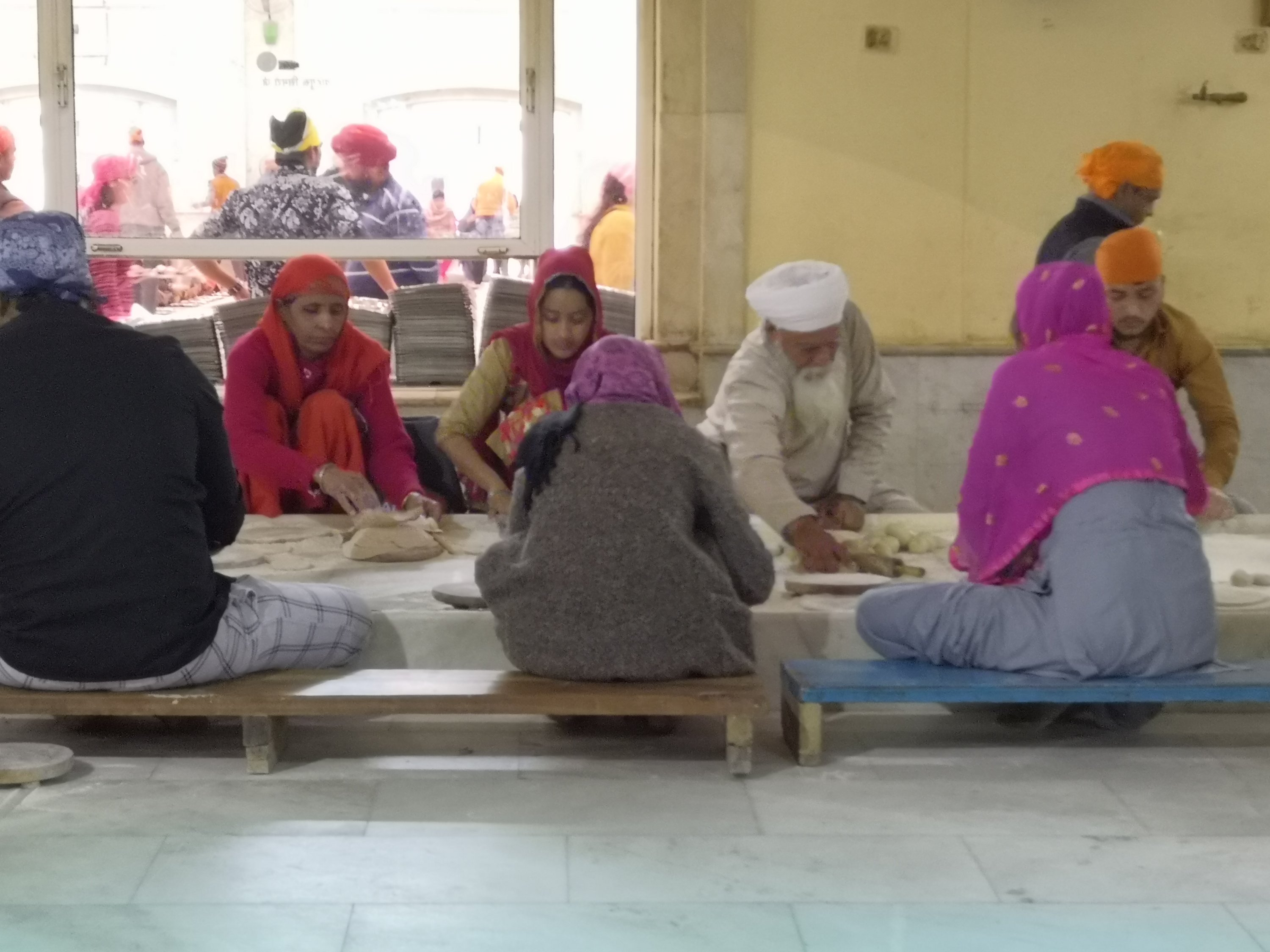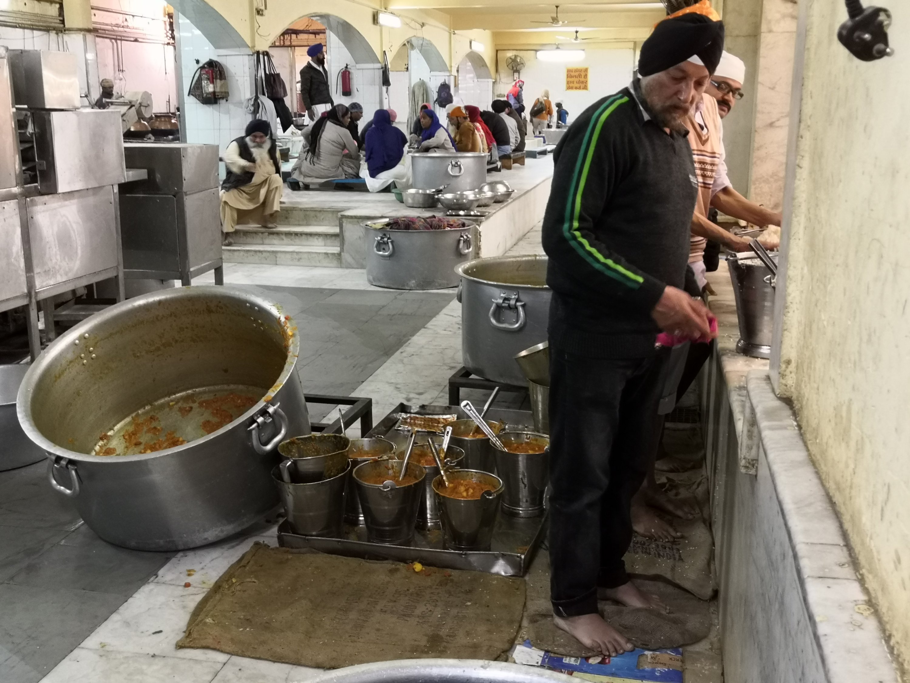 At the end of our tour we asked if we could eat there and were taken back and shown what to do. Chapatis have to be received with both hands, as taking one looks like you’re grabbing. We were given a metal tray and dahl and potato curry were brought along.
