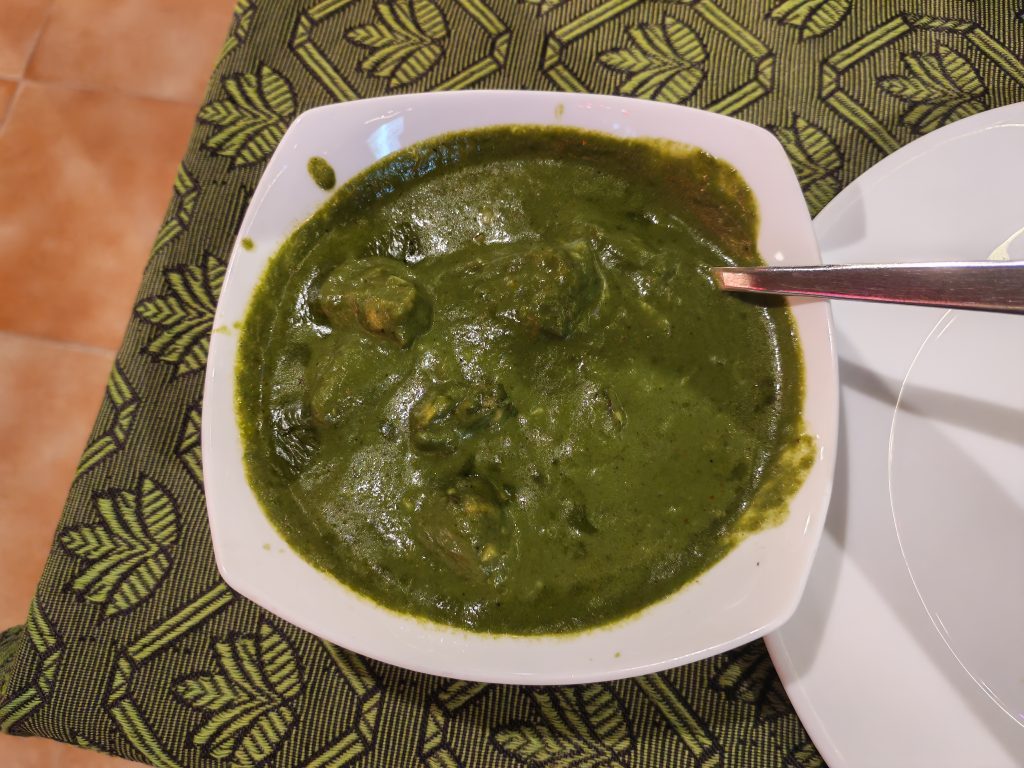 We went to Brilliant restaurant again tonight. I asked the waiter what was in the different curries. Palak? Peanuts. Ooh yum. Yes please.